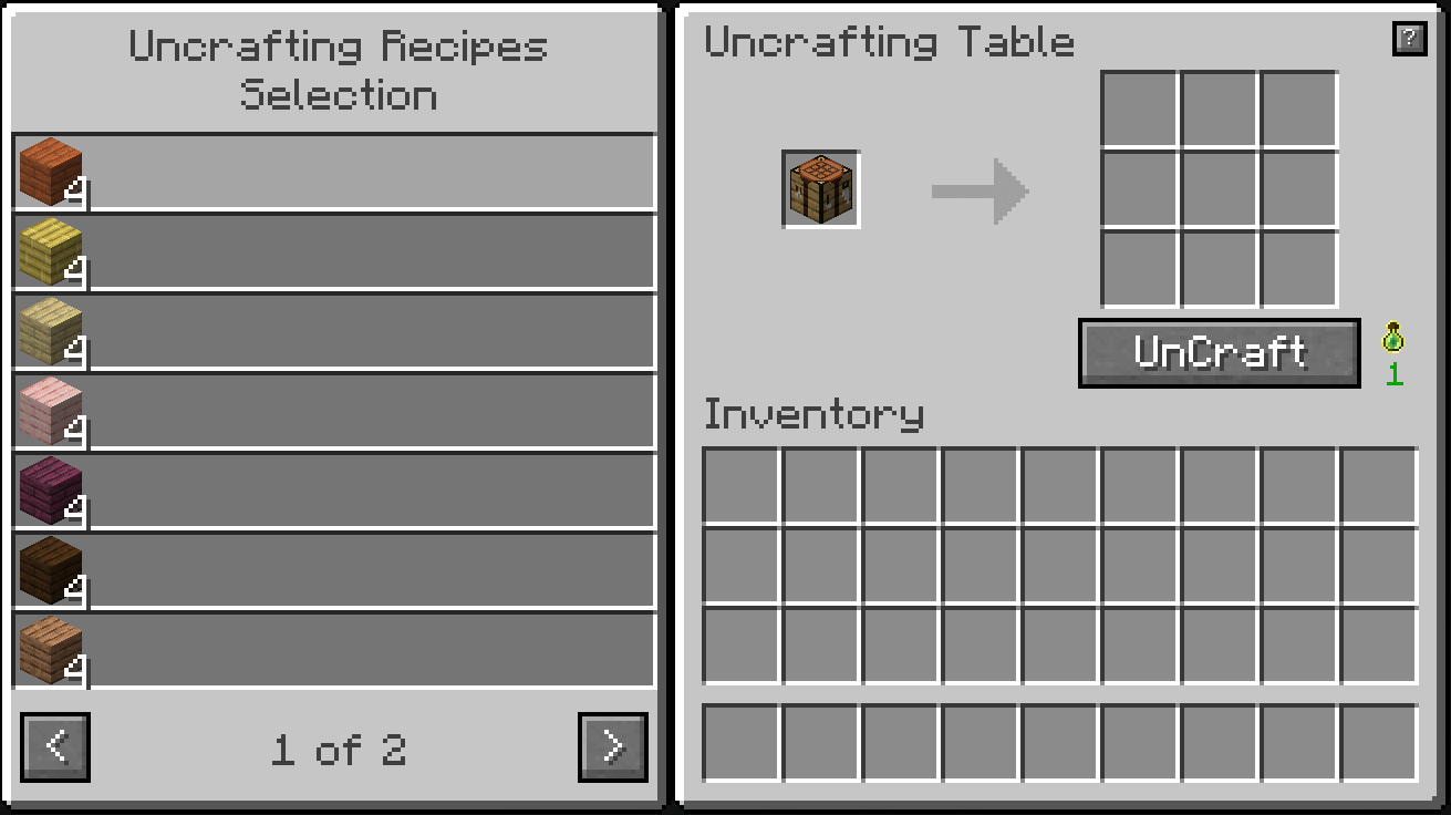 Because we cannot know what are the ingredients used to craft an item (e.g. a crafting table can be crafted with different planks), the Uncrafting Table will let player to select which type of ingredient to output instead of directly output the original used ingredients.